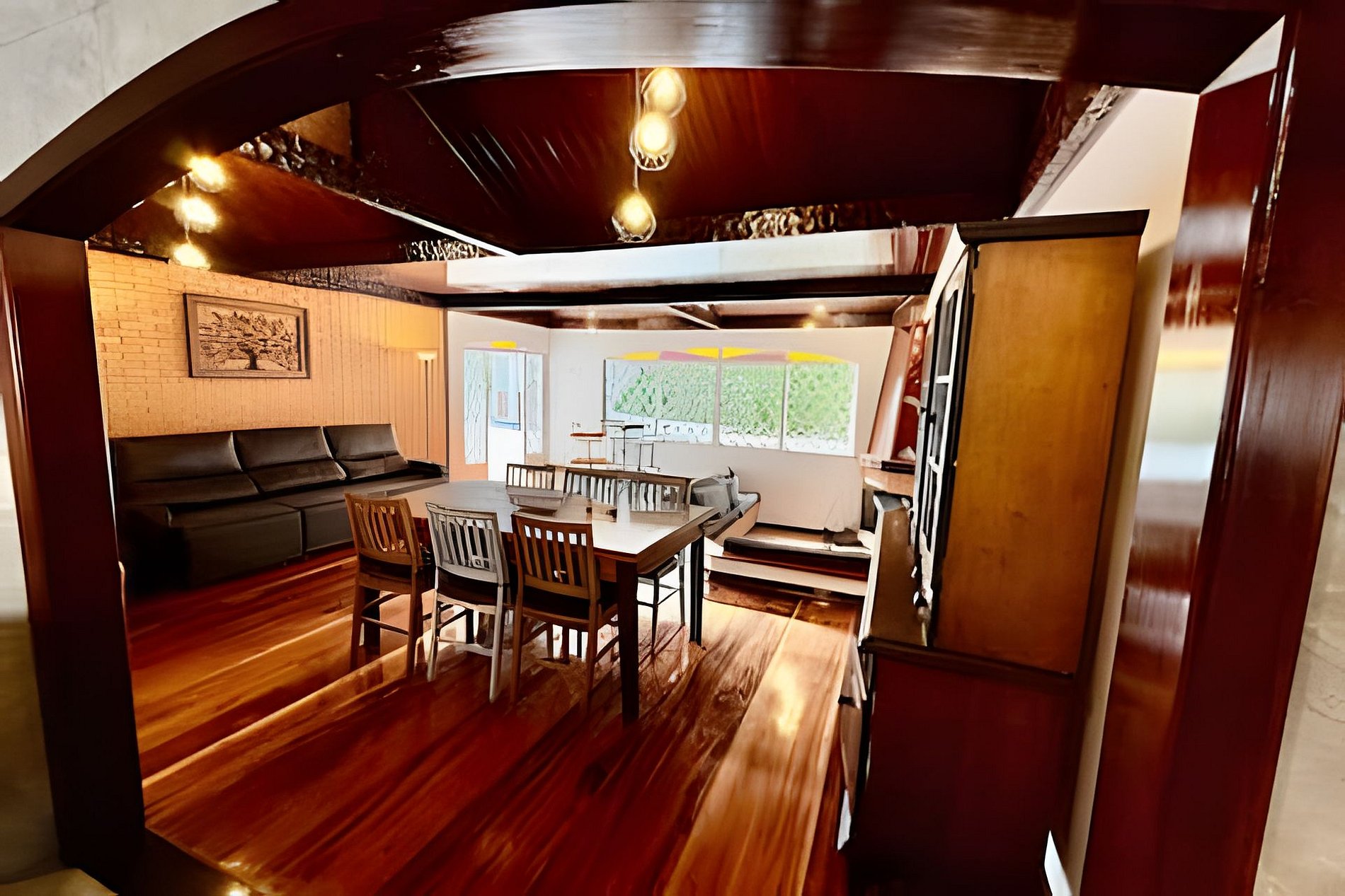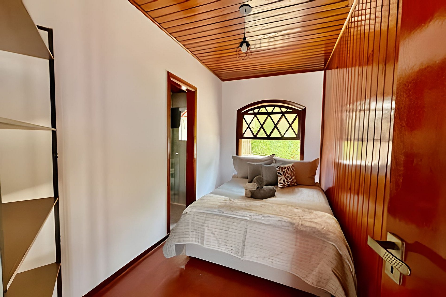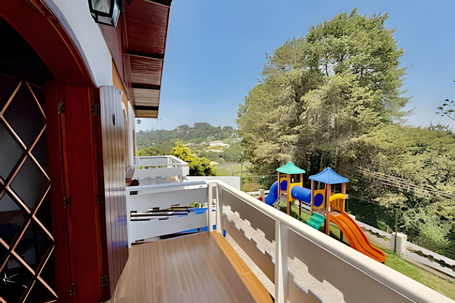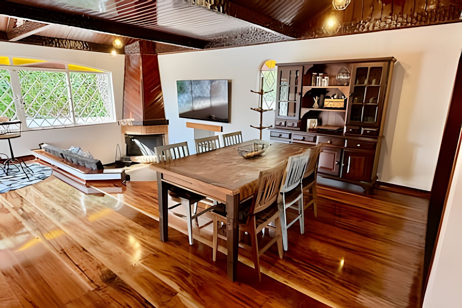 O imóvel possui sete quartos, sendo cinco suítes, todos com Smart TV e decoração aconchegante. A distribuição dos quartos é: três suítes com uma cama de casal e uma beliche, uma suíte com uma cama de casal, uma suíte com uma cama king e uma de solteiro, um quarto com uma cama de casal e uma de solteiro, e um quarto com quatro beliches. A casa conta ainda com cozinha completa de alto padrão, equipada com geladeira, fogão, micro-ondas, lava-louças, cafeteira, sanduicheira, airfryer, utensílios e louças. A sala de estar é ampla e confortável, com lareira e TV de 72 polegadas. Possui também sala de jogos com bilhar, pebolim e videogame arcade, spa jacuzzi aquecida e churrasqueira com área gourmet. Há lavanderia completa com lava e seca, parquinho infantil externo e mesas ao ar livre. É perfeita para famílias grandes, grupos de amigos ou eventos privados que buscam conforto e elegância em Campos do Jordão.