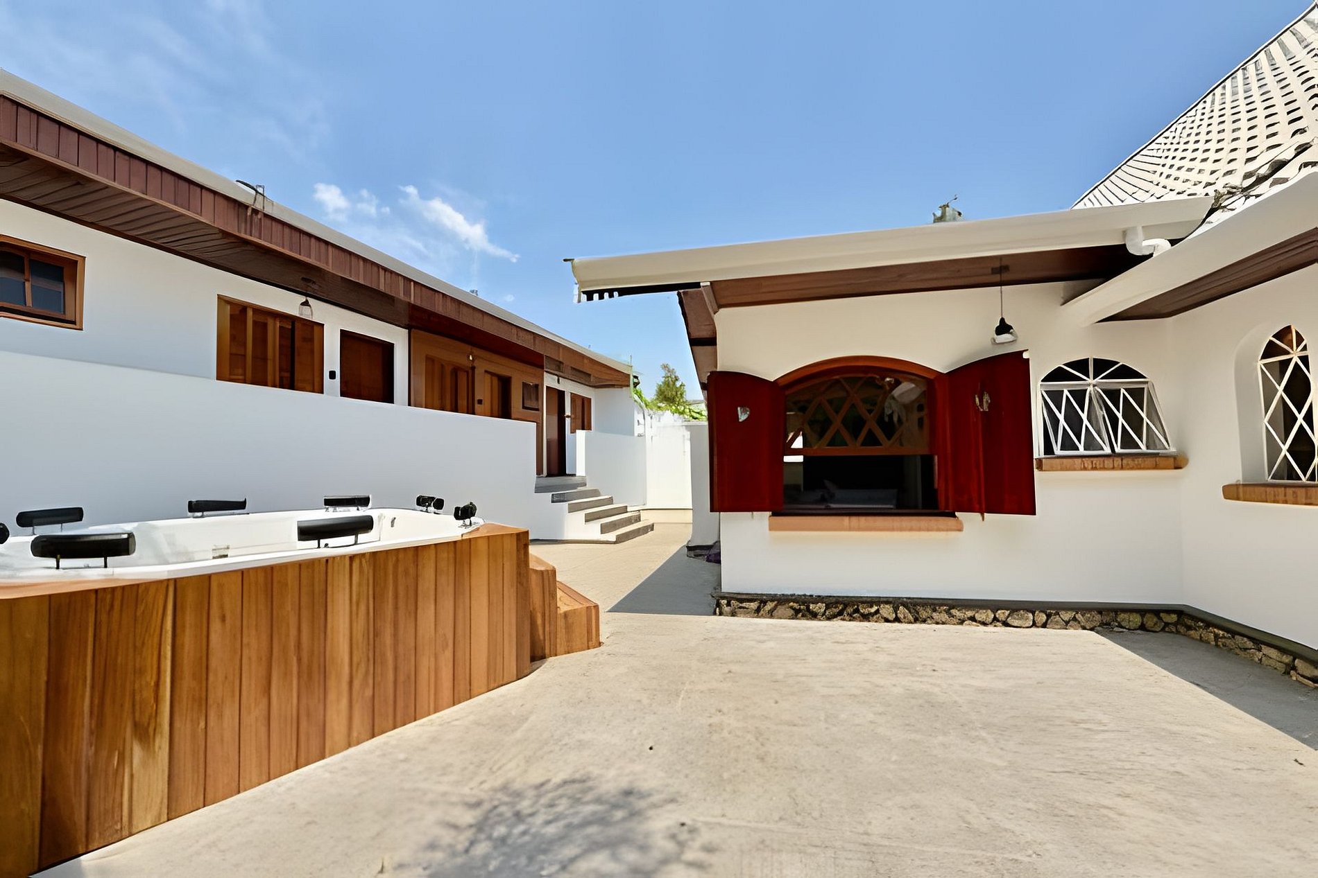 Access is independent and secure, with an electric gate and space for up to ten cars inside the property. Guests have full access to all areas, including the spa, game room, barbecue area, and playground. Check-in is self-service, and all instructions are sent before arrival.